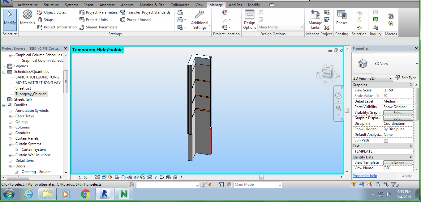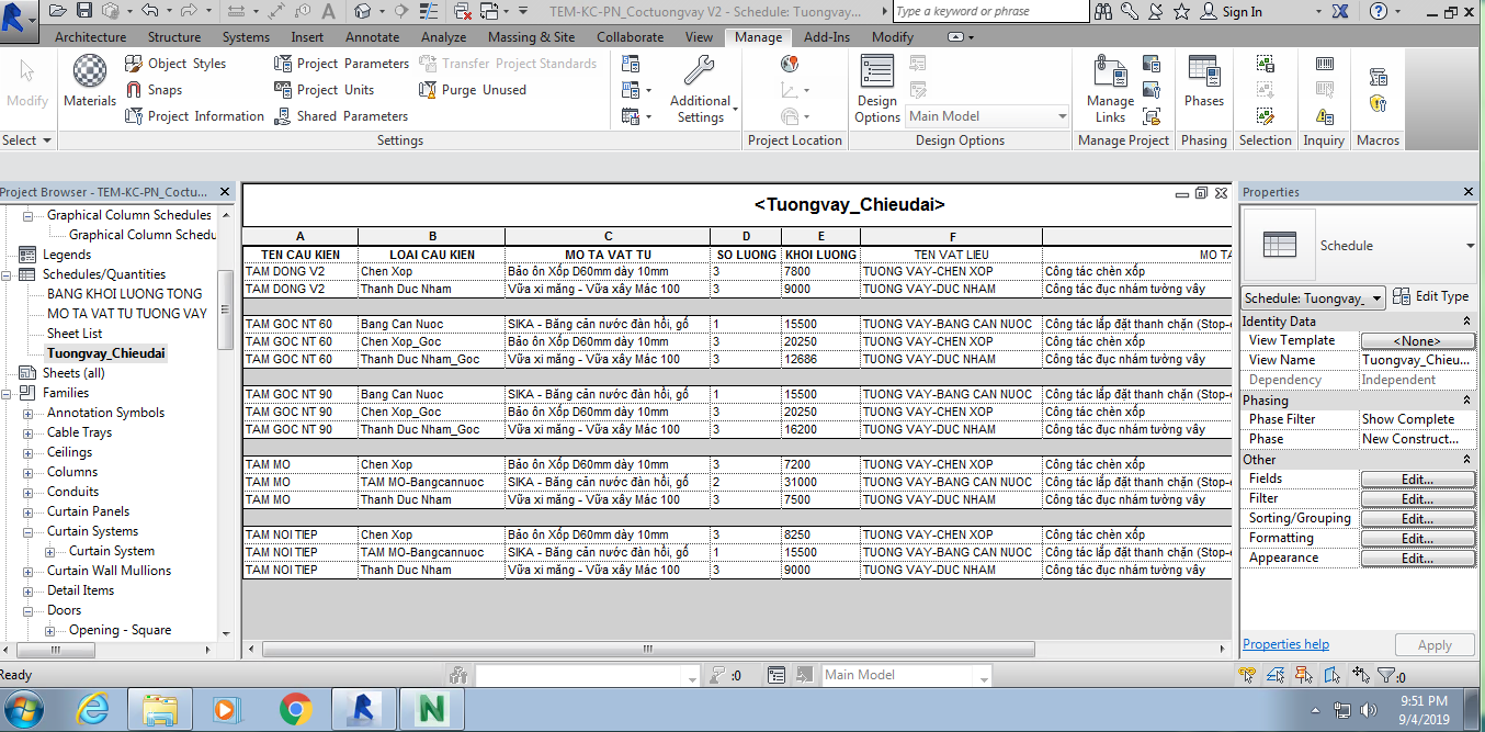 Bảng thống kê khối lượng bằng phần mềm Revit